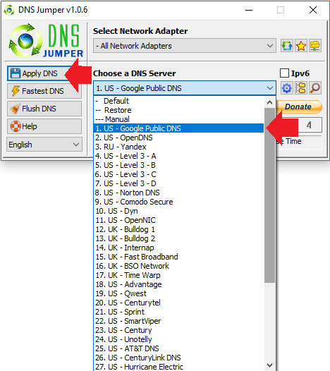 3. Pilih "Google Public DNS" dan tekan Flush DNS